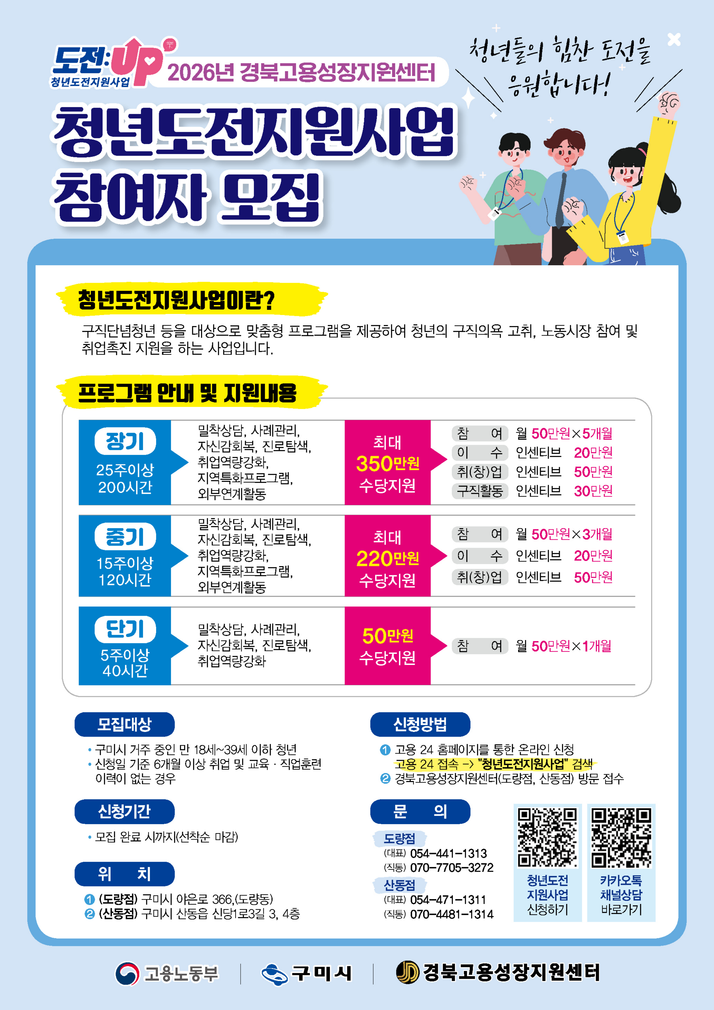 2026년 구미IN지원센터 -구미영스퀘어 전입상담 부스 운영- ▢ 일 시 : 2026년 3월 6일 ( 금) 오후 4시~ 5시 ▢ 장 소 : 구미영스퀘어 3층&2층 청년라운지 ※ 전입상담 및 인스타그램 팔로우 및 경품 지급 안내 ※ 전입을 원하는 청년들을 위한 상담 부스운영을 매주 금요일 16시부터 17시까지 진행합니다. 전입에 필요한 다양한 상담 및 경품을 받을 수 있는 기회이니 많은 관심과 참여 바랍니다. ※ 접수 일정매주 수요일 오후 1시 ~ 오후 5시매주 금요일 오후 4시 ~ 오후 5시 ※ 접수 방법현장 방문 접수 ※ 대상전입을 준비 중인 청년 누구나 ※안내 사항접수 시간 내 방문하시면 현장에서 신청 및 상담이 가능합니다. 전입을 향한 첫걸음, 구미IN지원센터와 함께 시작하세요!청년 여러분의 많은 참여를 기다립니다